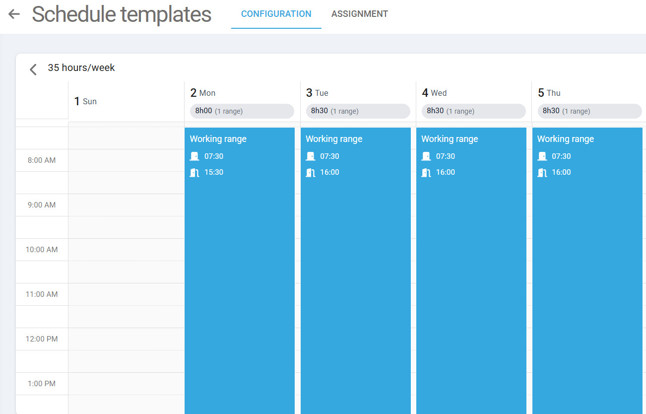 Choose from regular weekly templates, bi-weekly schedules, or variable templates. Minuto adapts to your schedule, whatever it may be.