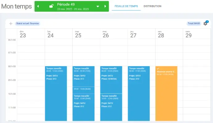 La feuille de temps complète est ensuite approuvée par le superviseur.